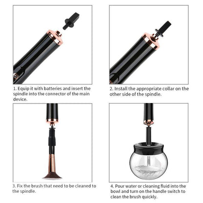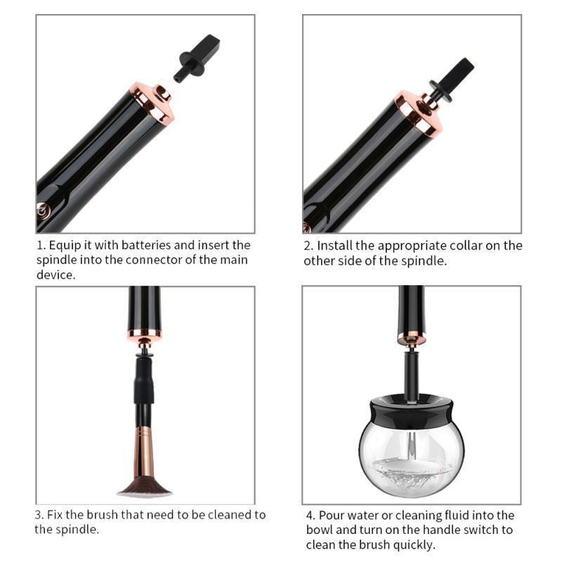 Electric Makeup Brush Cleaner & Convenient Washing Make up Brushes Cleanser Cleaning Tool Machine makeup brushes just in a few seconds. Easy to Use 3 step procedure, Assemble the spinner with makeup brush, Spin and rinse, Spin again to dry it.